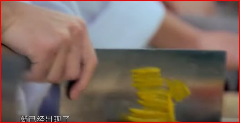 Κινέζικος μπαλτάς, το βασικό εργαλείο της απαιτητικής κινέζικης κουζίνας, κρατιέται από τη λάμα μεταξύ δείκτη και αντίχειρα.