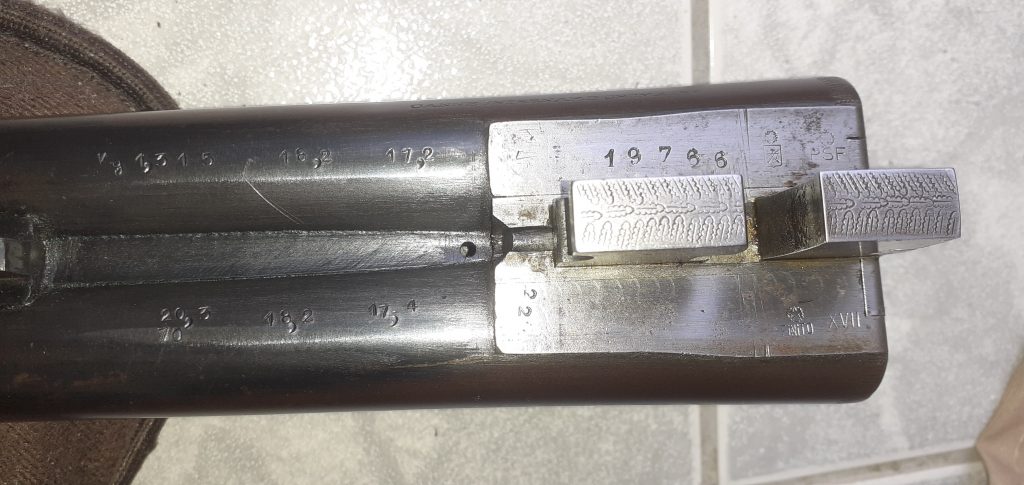 Το δίκαννο σας φέρει τις σφραγίδες ισπανικού όπλου που δοκιμάστηκε στην Τράπεζα Δοκιμών του Εϊμπάρ. Η δφραγίδα ΑΒ μάλλον είναι το οικόσημο του αρχικού κατασκευαστή και το μόνο που βρήκα να περιέχει τα γράμματα ΑΒ είναι από τον κατασκευαστή Balbitua, χωρίς όμως αυτό να είναι ασφαλές συμπέρασμα.