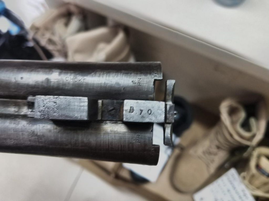 Οι κάννες είναι Βελγικές, δαμασκηνό ατσάλι κατασκευή του Bernard (Damas Bernard Fin). Το μόνο proof mark είναι μια κορώνα ( Βελγική ή Βρετανική) με από κάτω τα γράμματα PB (και όχι ΒΡ που θα μαρτυρούσε Birmingham).