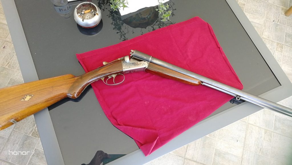 Το δίκαννο σας είναι της γαλλικής Manufrance μοντέλο Robust. To monobloc των καννών εξέχει, έχει δηλαδή ένα “σκαλί” πάνω από τις κάννες και αυτό το κατατάσσει στην πρώιμη φάση της παραγωγής των Robust.