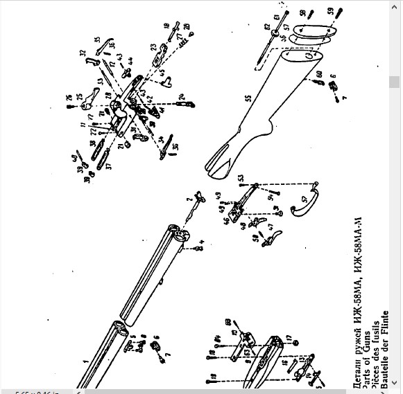 Baikal IZ58, σχεδιάγραμμα μηχανισμού, με αριθμούς 37 και 38 είναι τα ελικοειδή ελατήρια της σφύρας.