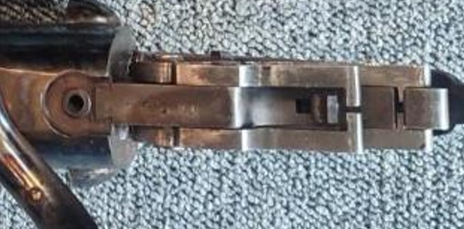 Προφίλ του μηχανισμού, προσέξτε τις βίδες που στηρίζουν τις σφύρες και τις σχαστηρίες, βίδες που δρουν και ως άξονες περιστροφής. Επίσης προσέξτε πως τα ελατήρια ενεργοποιούν τις σφύρες αλλά και τις σχαστηρίες.