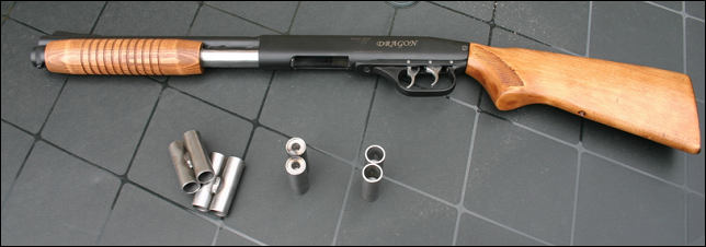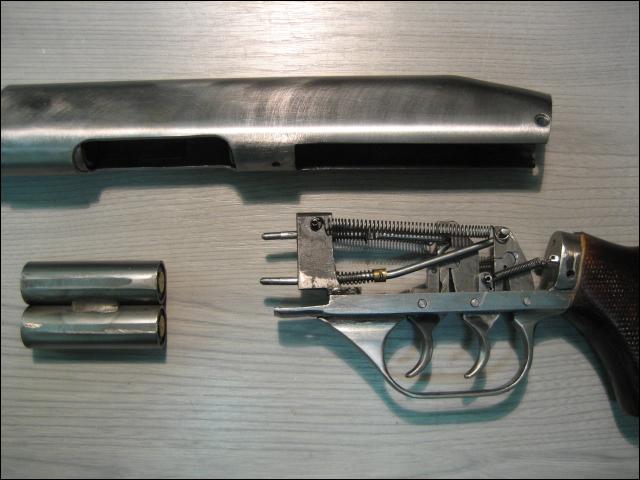 Οχι, δεν ενδιαφέρει άμεσα ως μέσον άμυνας. Η κατασκευή του είναι το ενδιαφέρον σημείο αφού κάπου συνδυάζει το δίκαννο με την καραμπίνα. Προσέξτε επίσης τις εναλλασσόμενες θαλάμες που προφανώς συγκρατούν το σύνολο των πιέσεων που αναπτύσσουν τα παράξενα φυσίγγια αυτού του όπλου.