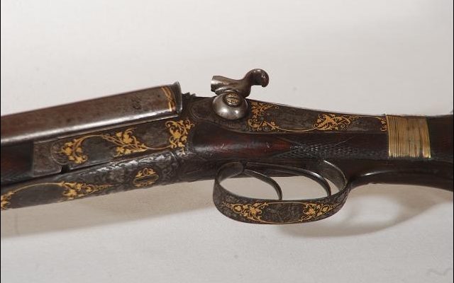 Το συγκεκριμένο όπλο, είναι ανεκτίμητης αξίας. Είναι χειροποίητο, αυτοκρατορικό. Οι παραστάσεις που είναι κεντημένες, χρυσό, απεικονίζουν όλα τα είδη του κυνηγιού, και έχει κατασκευαστεί για αριστερόχειρα κυνηγό….και βέβαια η αξία του δεν είναι μόνο ιστορική ,και ποιοτική, αλλά εξίσου και συναισθηματική…..