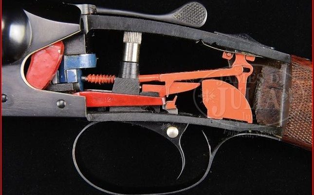 Winchester Model 21 προσέξετε πως η εγκάρσια βίδα που συνδέει την ουρά με την πλάκα της σκανδάλης, περνά μέσα από αποστατήρα (με ασημί χρώμα) ώστε να διατηρείται αναλλοίωτη η απόσταση μεταξύ ουράς και πλάκας όσο και αν σφιχτεί η βίδα.