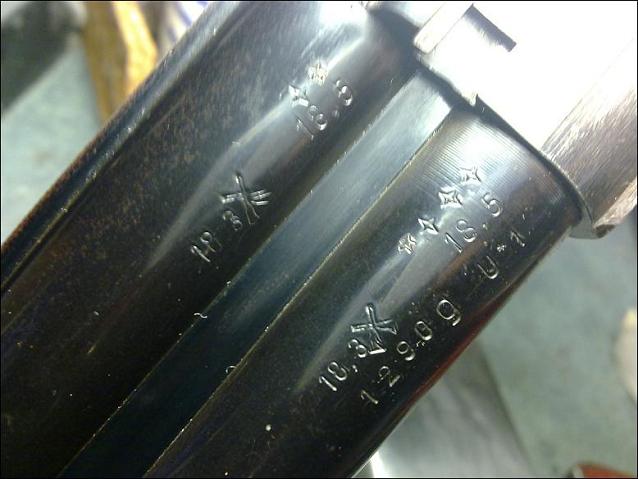 Για το συγκεκριμένο όπλο σας έχω ρωτήσει ξανά ότι στα χαρτιά αναφέρεται σαν άγνωστης προέλευσεως αλλα μετά από παρατήρηση με μεγεθυντικό φακό βρήκα την λέξη ESPANA. Πριν από λίγες μέρες κάποιος φίλος μου είπε ότι αγόρασε ένα όπλο και στις κάννες αναγράφεται δύο φορές η διάμετρος της θαλάμης, πράγμα που συμβαίνει και στο δικό μου όπλο. Σας επισυνάπτω φωτογραφία και παρακαλώ πέστε μας κάτι για αυτό το θέμα.