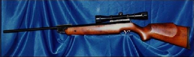Το αεροβόλο που βλέπετε στη φωτογραφία έχει ράγισμα στο κοντάκι από την βίδα στο μπροστινό μέρος του κοντακιού μέχρι το τέλος του ξύλου. Εχει επισκευαστεί με ρητίνη και εγκάρσια βίδα.