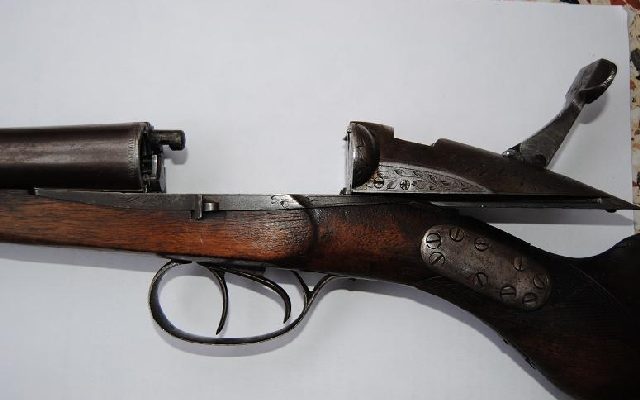Και σύμφωνα με όσα μου περιέγραψε, διαθέτει σύστημα πυροδότησης με μεταλλικούς κάλυκες, τους οποίους γεμίζει μόνος σου. Κάποτε σε ένα τεύχος του “Έθνος-Κυνήγι” είχατε γράψει για ένα ανάλογο όπλο. Σας παρακαλώ αν γνωρίζετε οτιδήποτε για αυτό το όπλο(αξία, ημ/νια κατασκευής κτλ) Ευχαριστώ εκ το προτέρων!