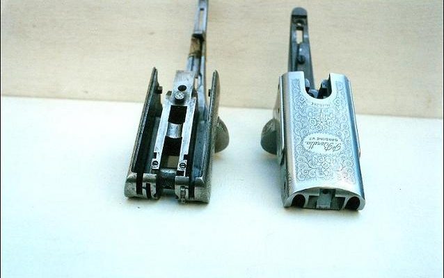 Αριστερά, αγγλικό δίκαννο με μισές φωτιές, δεξιά το Beretta, η διαφορά είναι εμφανής.