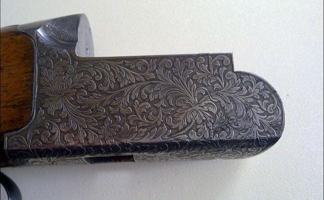 Κατέχω απο τον πατέρα μου ένα Αγγλικό εξώσφυρο δίκαννο το οποίο έχει τα εξής χαρακτηριστικά: Το όπλο έχει την μπάσκουλα επενδεδυμένη απο την κάτω πλευρά με ξύλο που αποτελεί συνέχεια του κοντακίου.Αυτή η σχεδίαση μετά απο έρευνα στο διαδύκτιο αποκαλείται “bar in wood” και διαπίστωσα ότι εφαρμοζόταν απο πολύ διάσημα ονόματα της πάλαι ποτέ ενδόξου οπλοκατασκευαστικής εποχής της Αγγλίας, όπως Purdey, W. Evans, St. Grant κ.λ.π.