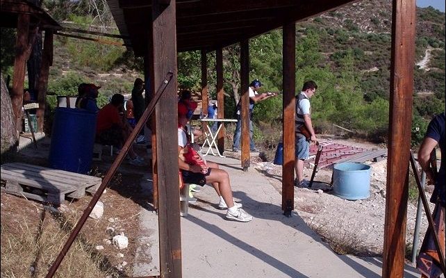 Σε απόσταση μερικών δεκάδων μέτρων γύρω από το εντευκτήριο είναι τα πεδία του κινητού στόχου. Στο ένα, το πιο δημοφιλές αν κρίνω από την προσέλευση σκοπευτών, γινόταν επίσημη σκοποβολή σε Κόμπακτ Σπόρτινγκ. Μέτρησα περίπου είκοσι σκοπευτές να συμμετέχουν, και ήταν ακόμα νωρίς, γύρω στις 5 το απόγευμα. Μέσα στην ζέστη του κυπριακού καλοκαιριού οι περισσότεροι περίμεναν να δροσίσει λίγο πριν ανηφορίσουν από τη Λεμεσσό για το Μονάγρι.