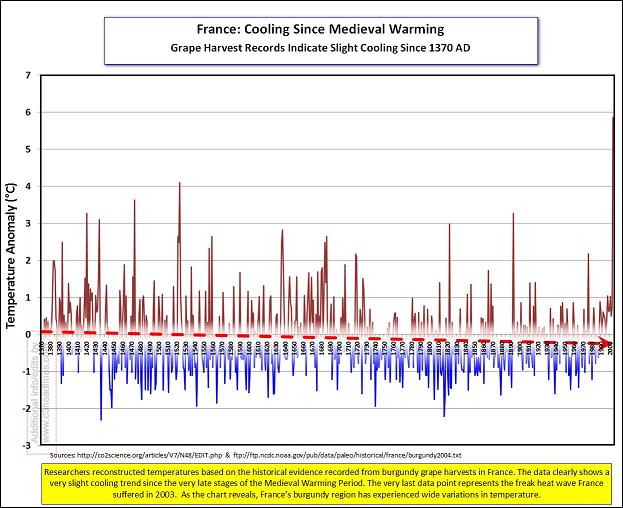 Οι Γάλλοι οινοποιοί διατηρούν μια μακρά παράδοση καταγραφής στοιχείων για να ξέρουν τις καλές χρονιές του κρασιού. Στην περιοχή της Βουργουνδίας, μιας από τις πιο φημισμένες οινοπαραγωγικές περιοχές του κόσμου, τα στοιχεία θερμοκρασιών πάνε πίσω στο 1370.