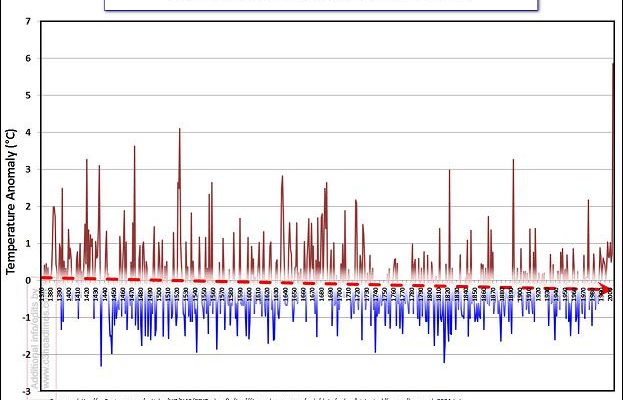 Τα στοιχεία είναι ξεκάθαρα: Στα 633 χρόνια καταγραφής θερμοκρασιών φαίνεται ότι η περιοχή της Βουργουνδίας δεν υπερθερμάνθηκε, αλλά αντίθετα παρατηρείται μια μικρή μείωση της μέσης θερμοκρασίας. Το δε γράφημα των θερμοκρασιών δεν έχει καμία σχέση με το κατάπτυστο μπαστούνι του χόκεϋ που χρησιμοποιείται από διάφορους, όπως ο Αλ Γκορ, για να μας φοβίσουν και να μας κάνουν να υποκύψουμε σε παραλογισμούς όπως αυτούς που βλέπουμε να σχεδιάζονται από το υπουργείο “κλιματικής αλλαγής”.