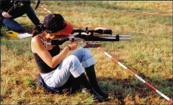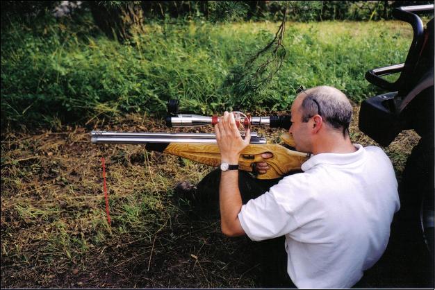Ο σκοπευτής πλήρως “κλειδωμένος” με το αεροβόλο και έτοιμος να ρίξει. Δείτε και εδώ το αριστερό χέρι και παραταρήστε το ρυθμιζόμενο μάγουλο και πέλμα.