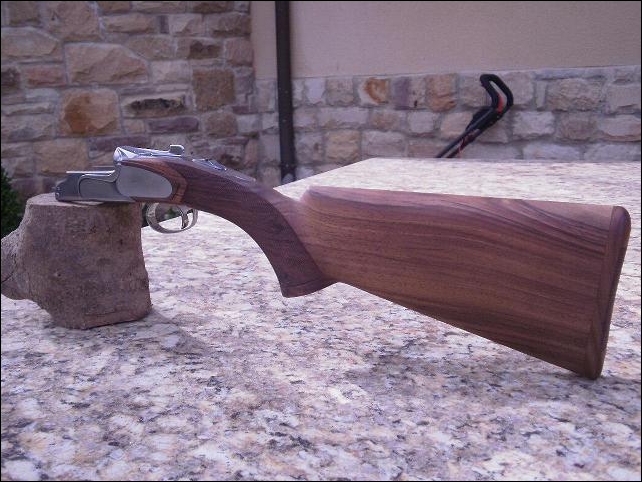 The graceful lines are evident in the whole and not just in parts. The low profile, the raked forend iron, the alternation of curves and planes give this OU a unique look. Modern yet not at all alien. The shapes are such that it really does not need any engraving. It is a beautiful object as it is.