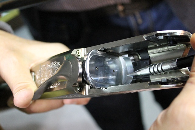 The trigger group is compact, and contains the firing, opening and single trigger systems.