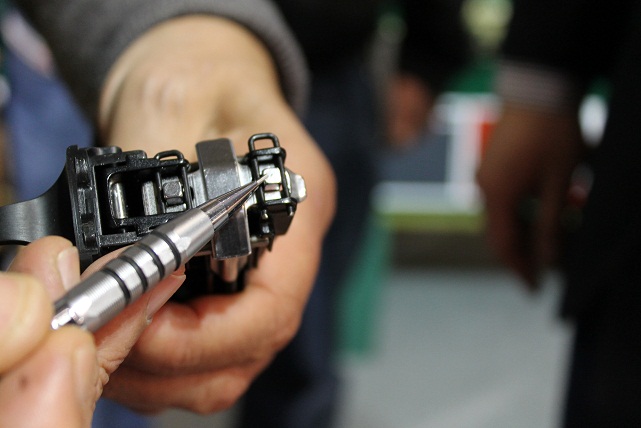 Using this simple factory supplied tool the trigger group is released from the receiver.