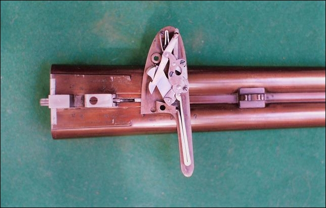 A Westley Richards sidelock. Count the parts carefully and add the cocking lever and its entourage.