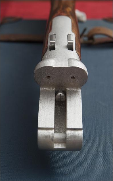 A solid barrel hinge and round bolt lock the barrels to the action. There is no middle bridge.