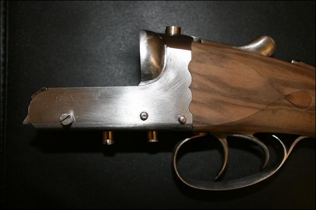 The British still employ a parallel bar as illustrated by this Boxall and Edminston creation. It is interesting to see how close to the action the triggers have come and the sraightish top strap.