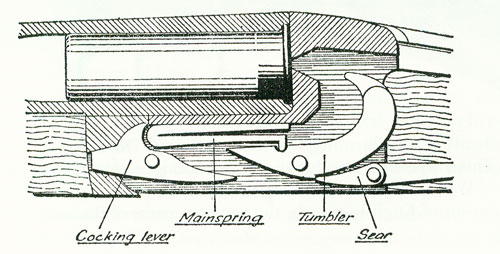 Πρόκειται για απλούστατη ιδέα που χρησιμοποιεί το ίδιο το κύριο ελατήριο της σφύρας για να την ανασύρει μετά την πτώση και κρούση στη βελόνα των δίκαννων με κοκόρια. Η ανάσυρση γίνεται από το ίδιο το ελατήριο που πυροδοτεί, άρα δεν έχει παραπανήσια τμήματα, και με την ανάσυρση η σφύρα παγιδεύεται μέσω της εγκοπής ασφάλειας από την σχαστηρία. Με την σφύρα μπλοκαρισμένη το όπλο δεν μπορεί να πυροδοτήσει από μια τυχαία πτώση ή κτύπημα στον εξωτερικό κόκορα. Η αυτόματη ανάσυρση ήταν εφεύρεση του Αγγλου οπλουργού και κατασκευαστή φωτιών Stanton. Είναι από τις ιδέες που βλέπεις και αναφωνείς “γιατί δεν το σκέφτηκα, είναι τόσο απλό!” Είναι ενδιαφέρον ότι η εφεύρεση του Stanton συνέπεσε χρονικά, το 1865, με την εμφάνιση των κεντροφλεγών φυσιγγίων.