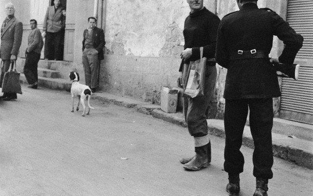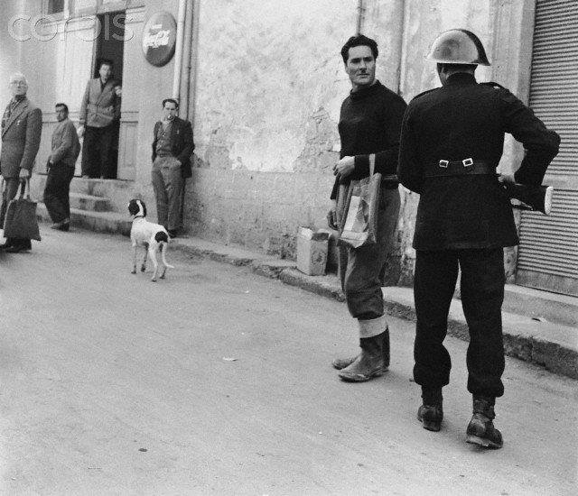 Η σκηνή είναι από την Κύπρο, την περίοδο του απαλευθερωτικού αγώνα της ΕΟΚΑ. Ο αστυνομικός με τα μαύρα που απειλεί τον διαβάτη είναι “Επικουρικός”. Οι Επικουρικοί ήταν όλοι Τουρκοκύπριο προσληφθέντες από τους Αγγλους και αστυνόμευαν κυρίως αστικές περιοχές. Ο τρόπος που συμπεριφέρεται ο συγκεκριμένος Επικουρικός προς τους Ελληνοκύπριους στην αγορά, (μάλλον είναι η οδός Ερμού στην εντός των τειχών Λευκωσία) ήταν χαρακτηριστικός του κλάδου.